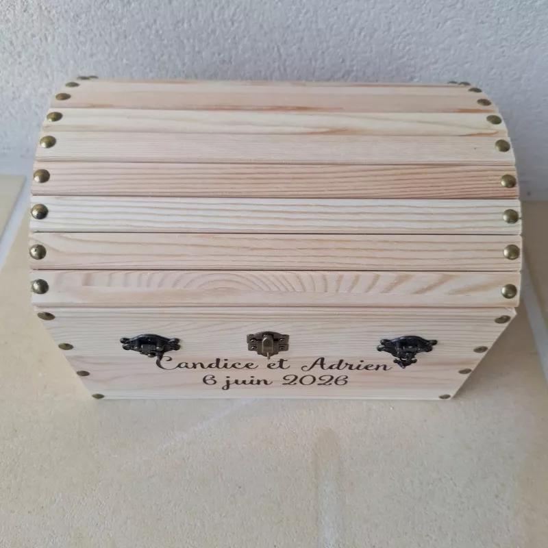 Offrez aux mariés un souvenir unique et rempli d’émotions avec cette capsule temporelle en bois naturel personnalisée.